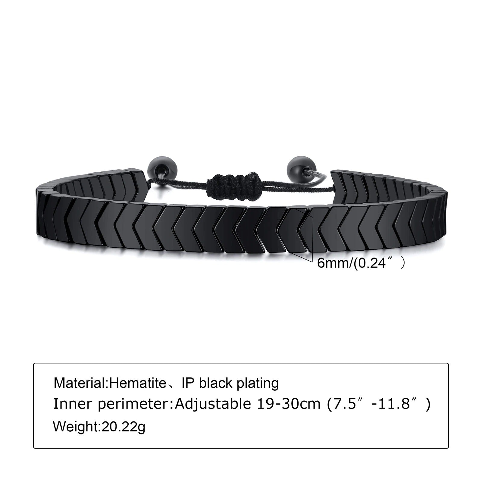 hematite arrows bracelet with macrame sliding knot for adjustable fit